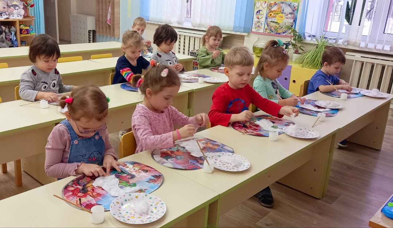Сегодня воспитанники ГУО «Детский сад 127 г.Гомеля» 2 младшей группы на занятии по изобразительному искусству (аппликация) продолжили работу в новой технике — аппликация с использованием ваты. Ребята очень старались и всё у них получилось!