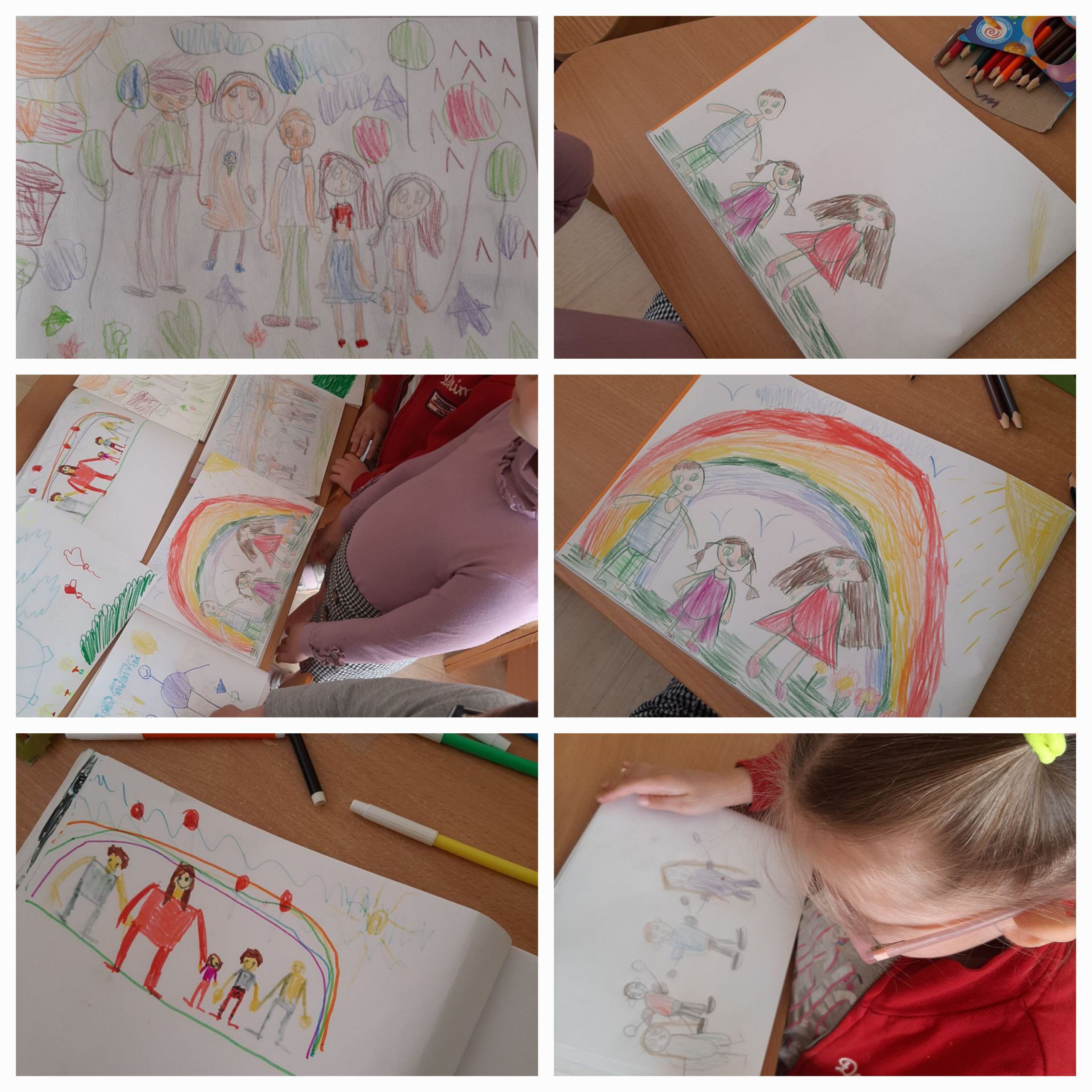Сегодня ребята старшей группы во время нерегламентированной деятельности изобразили то, что доставляет им ощущение радости и счастья, а именно семейные прогулки.