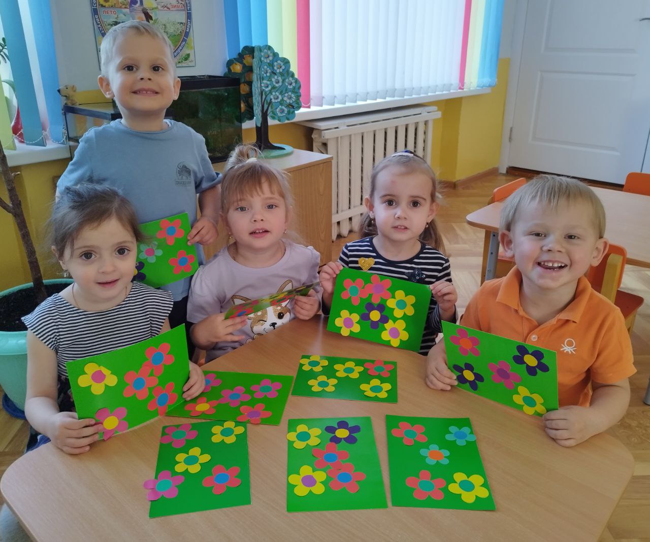 В ГУО «Детский сад 127 г.Гомеля» ребята, рассматривая на прогулке цветущие растения, на занятии по изобразительному искусству смастерили свои цветочные полянки.