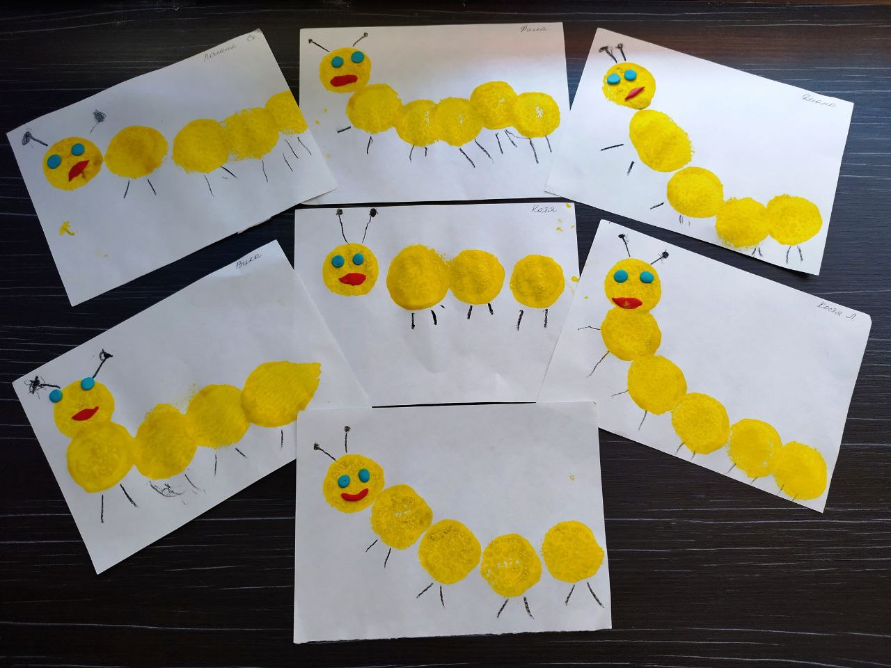 А когда добавили детали: глазки и ротик из пластилина, ножки и рожки нарисовали карандашом — получилась замечательная гусеница!!! 🐛