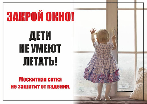 Никогда не держите окна открытыми, если дома ребёнок! Вам кажется, что Вы рядом, но секунда, на которую Вы отвлечетесь, может стать последней в жизни Вашего ребёнка! Установите на окна блокираторы, чтобы ребёнок не мог самостоятельно открыть окно! Помните, что москитные сетки − это не препятствие, дети опираются на них и выпадают вместе с ними наружу! Не ставьте мебель у окон, которая может служить лестницей для ребенка, пытающегося достать до окна. Обеспечьте безопасное расстояние от мебели до оконной рамы.