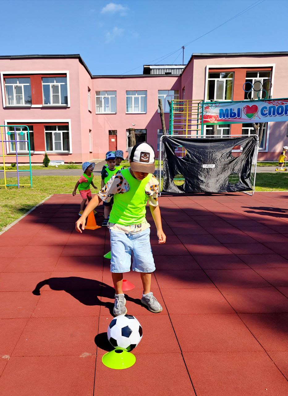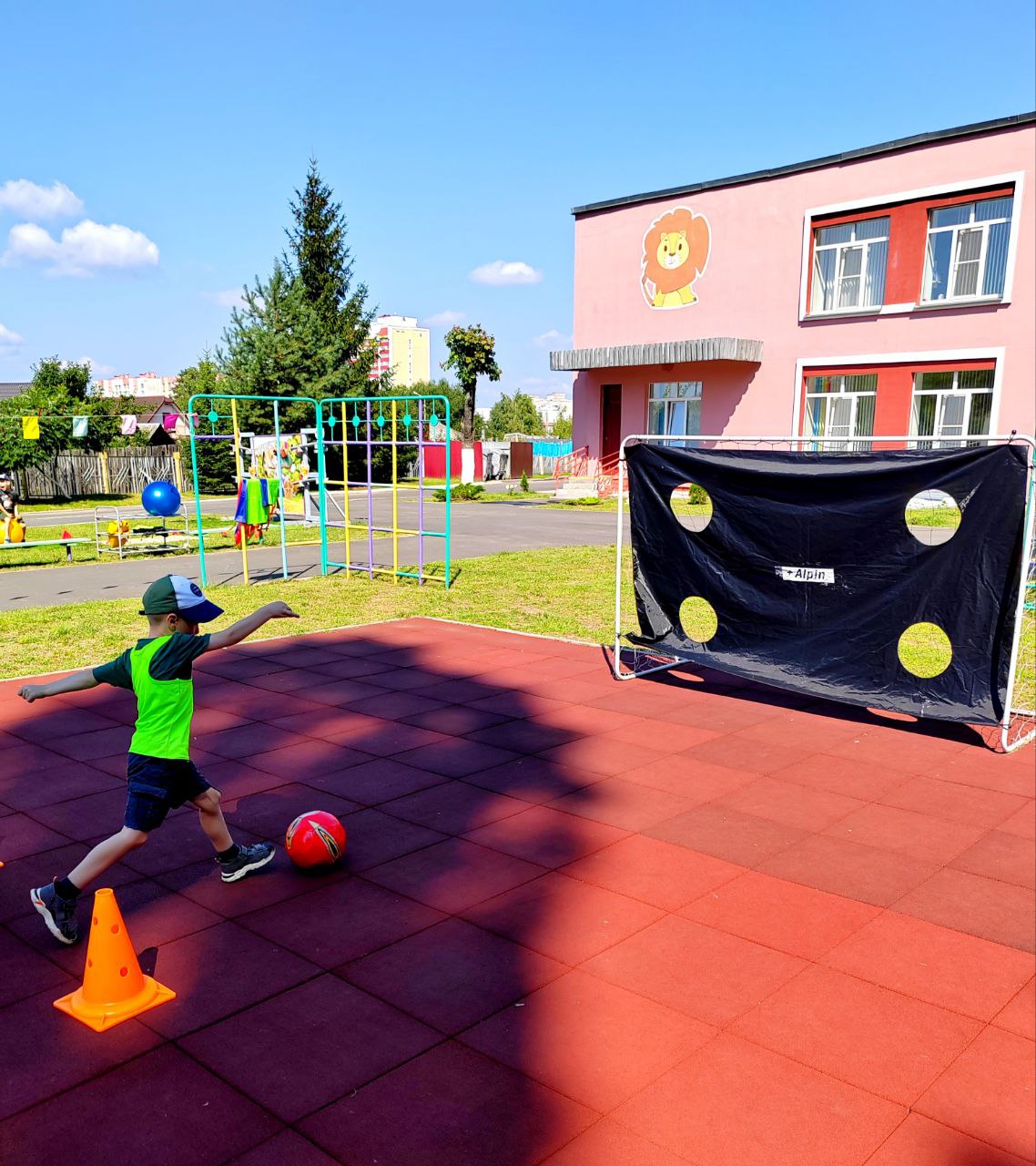 В ГУО «Детский сад №127 г. Гомеля» ребята на занятии по физической культуре разделились на команды и как настоящие футболисты с помощью упражнений и футбольных эстафет смогли попробовать свои силы в этом виде спорта :ловко вели ногой мяч, преодолевали препятствия и забивали гол в ворота 🥅⚽️. Маленькие спортсмены проявили ловкость, быстроту реакций и спортивную выдержку 🏃➡️⚽️👫