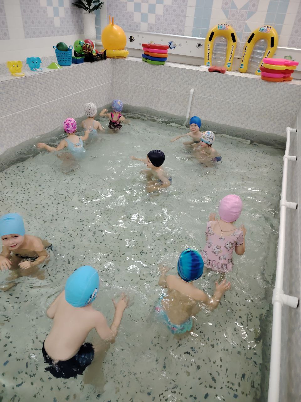 В ГУО «Детский сад №127 г. Гомеля», маленькие обитатели бассейна очень любят плескаться в воде, учить стихотворения в сопровождении с жестами. А игры с разноцветными шариками 🎈🎈развивают ловкость и закрепляют знания о цветах🌈