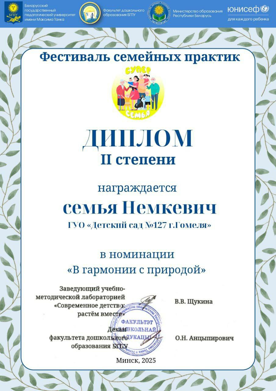 🥈 Диплом II степени — Семья Немкевич Благодарим семью и педагогов за подготовку, креатив, яркие идеи и искреннюю любовь к семейным традициям!
