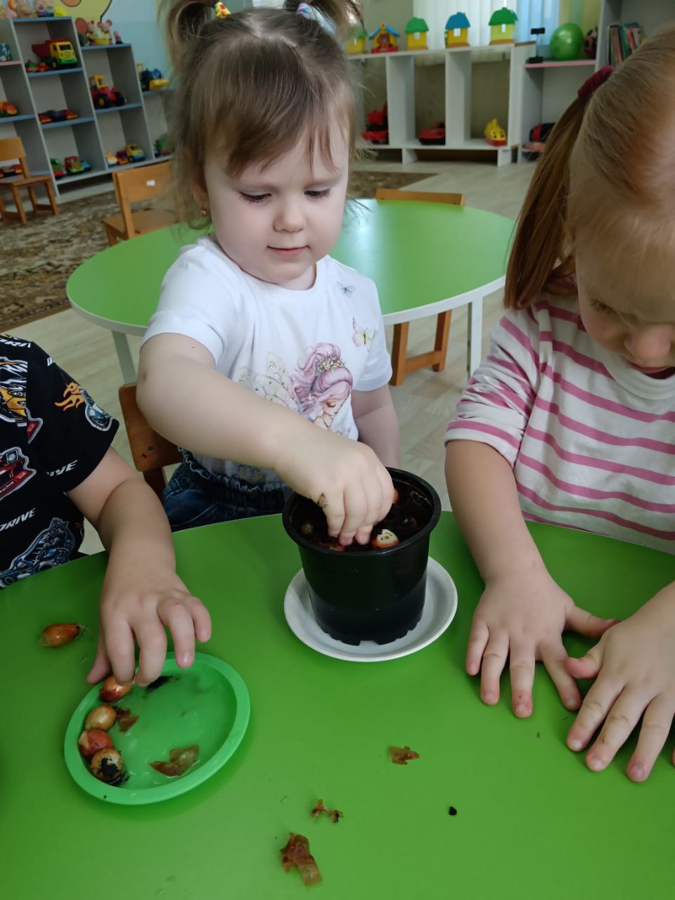 Сначала мы рассмотрели семена: маленькие, круглые, а потом каждый ребёнок мог попробовать себя в роли фермера 👩🌾